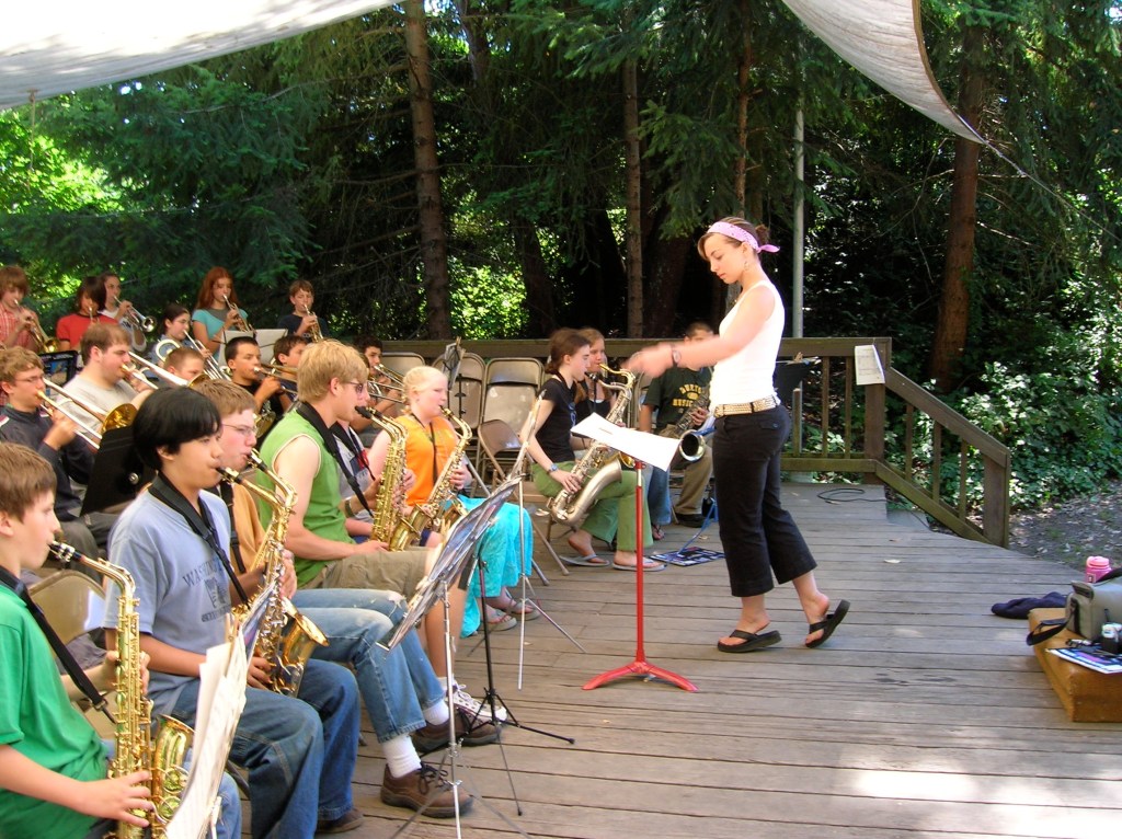 Foto: Sra. Owen enseñando a una banda de jazz en un campamento de música del verano en 2006!